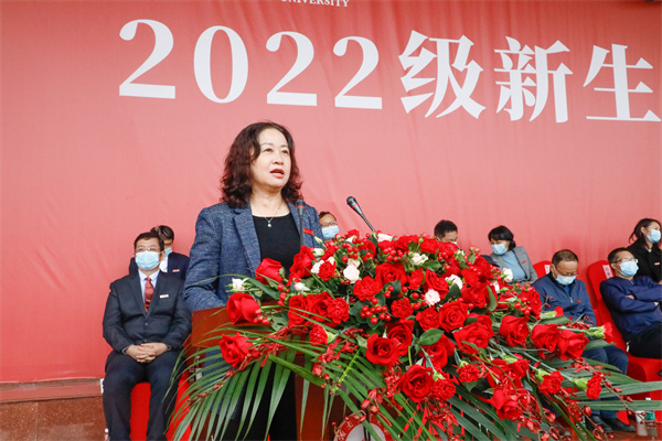 2022级草业科学1班陈叶桐作为新生代表号召同学们立鸿鹄志,做信念坚定、誓不气馁的奋进者;力学笃行,做潜心钻研、乡村振兴的行动者;勇于创新,做立足当下,追求卓越的开拓者。不忘来时对梦想的追求,勇担时代给出的命题,在青春的赛道上奋力跑出最好成绩。