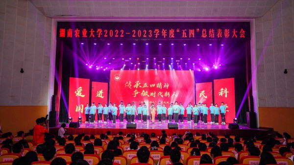 5月4日上午,湖南农业大学在大礼堂召开2022-2023学年度共青团工作总结表彰大会。校党委书记陈弘,全体在校校领导、党委委员出席大会。学校相关职能部门负责人,各学院党委书记、分管学生工作副书记、团委书记及师生代表700余人参加。校党委委员、副校长吴波主持。