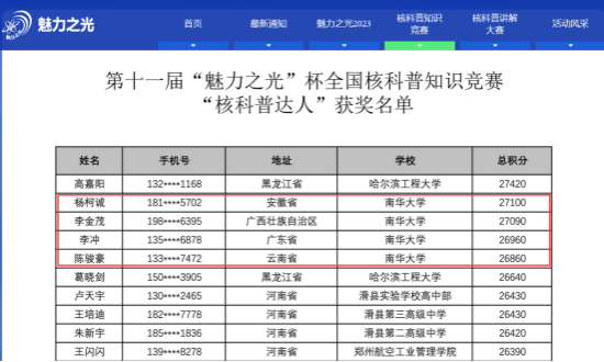 6月27日,中国核学会传来捷报,在中国核学会与中国核能电力股份有限公司(简称中国核电)联合主办的第十一届“魅力之光”全国核科普知识竞赛上,南华大学有21名选手进入全国百强,荣获“全国核科普达人”称号。