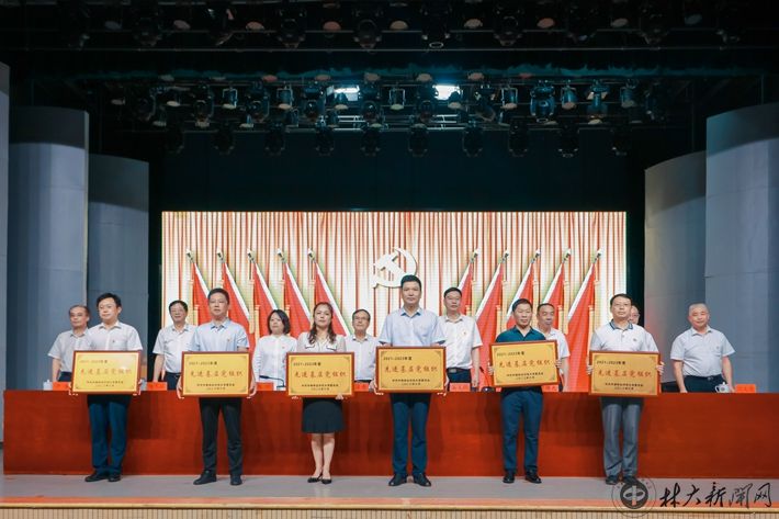 表彰大会上,学校党委副书记仇怡宣读《关于2023年“七一”评先评优的表彰决定》,在主席台就座的校领导为获奖先进集体和个人颁发了奖牌和证书。李婷、王志永、何佩云三位同志作为先进基层党委、先进党支部和优秀共产党员代表先后作交流发言。