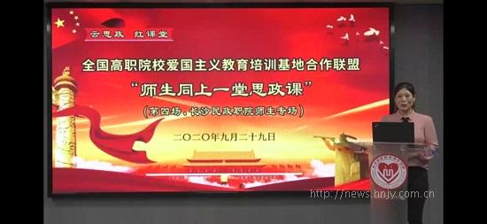 本网讯(通讯员 覃扬庆 王萍)9月29日,由全国高职院校爱国主义教育培训基地合作联盟主办,长沙民政职业技术学院马克思主义学院承办的“云思政 红课堂”——“师生同上一堂思政课”第四场--长沙民政职业技术学院师生专场“讲红色故事 传承革命文化”于下午两点半正式开讲,全国高职院校师生共同实时品味了这一场别开生面的直播课。北京文华在线教育科技股份有限公司的优学院平台为活动提供全程直播技术支持。