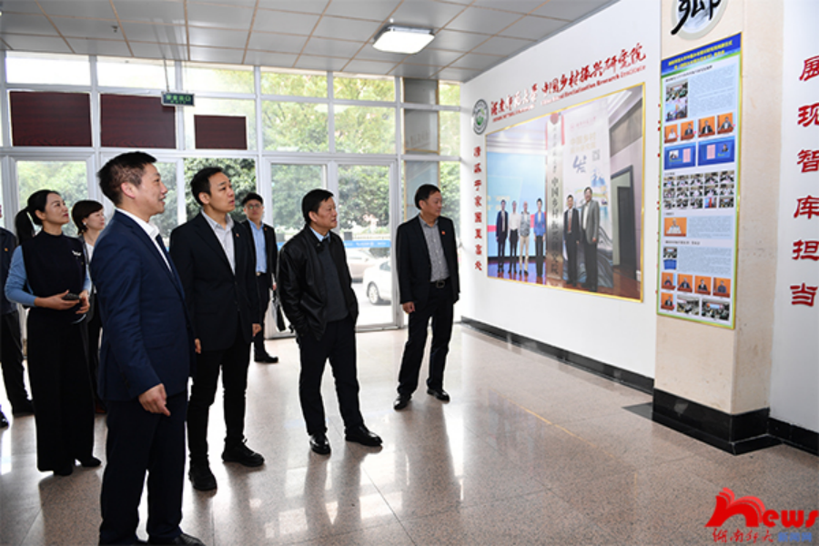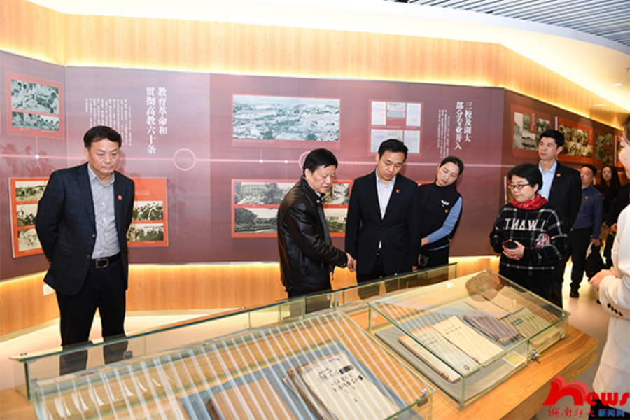 刘静一行参观了校史馆、中国乡村振兴研究院,蒋洪新向刘静介绍了学校创立渊源、历史沿革、现阶段发展概况,一行人在中国乡村振兴研究院观看了乡村振兴相关宣传片并详细了解工作情况。在桃子湖文化创意产业园,重点考察了我校青年师生的创新创业项目,“师大文创”、中国湘绣创意馆、大学生创新创业孵化基地、湖南大科城黑马文化发展有限公司相关负责人介绍了有关情况。刘静还考察了我校博物馆和地学博物馆。