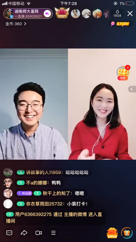 2月20日19时30分,以“同‘星’战疫,‘易’起学习收获”为主题的第四期网络直播微课堂热烈开展。学校“在你身边”网红辅导员生命科学学院王洋和法学院罗紫薇两位辅导员老师担任主播,与同学们在线交流,引导同学们重视防疫知识学习,适应线上学习、重视课外学习。